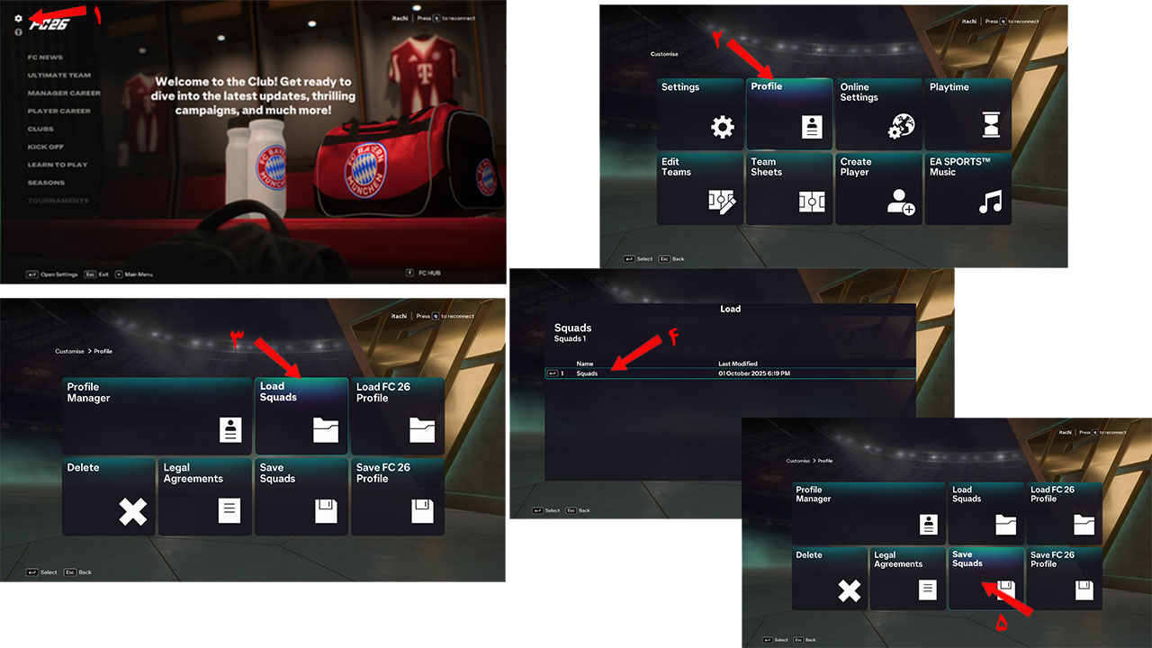 برای بروز شدن نقل و انتقالات کافیه به داخل خود بازی قسمت ستینگ رفته و اسکواد مربوط را لود و حتما سیو کنید
